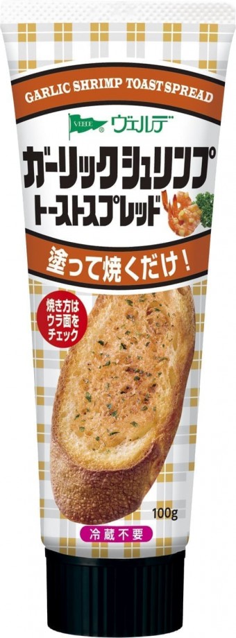 パンに塗って焼くだけで簡単にトーストメニューが楽しめる「ヴェルデ トーストスプレッド」シリーズの新商品。殻ごと砕いたエビにガーリックの風味をきかせることで、「ガーリックシュリンプ」ならではの香ばしさやエビのうまみを感じられるよう仕立てている。
