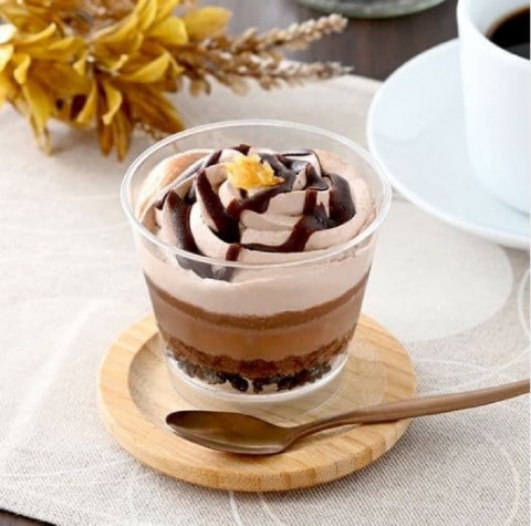 ファミリーマート専用のオリジナルチョコ「エクアドルスペシャル」を使用したスイーツ。オレンジの風味香るチョコムースやオレンジソース、チョコガナッシュクリームなどを重ね最後にオレンジピールをトッピング。