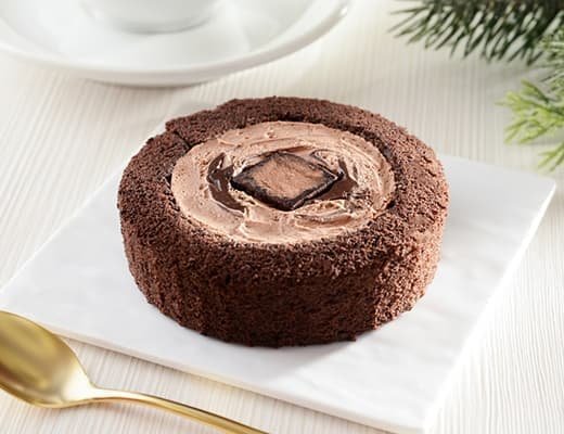生チョコがごろっとのったショコラロールケーキ。濃厚なチョコレートを使用したチョコ生地とチョコクリームに、チョコソースをトッピングしている。