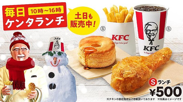 ケンタッキーフライドチキン(KFC)各店で、1月6日から大人気「500円ランチ」がレギュラー販売されている。一部販売しない店舗あり。