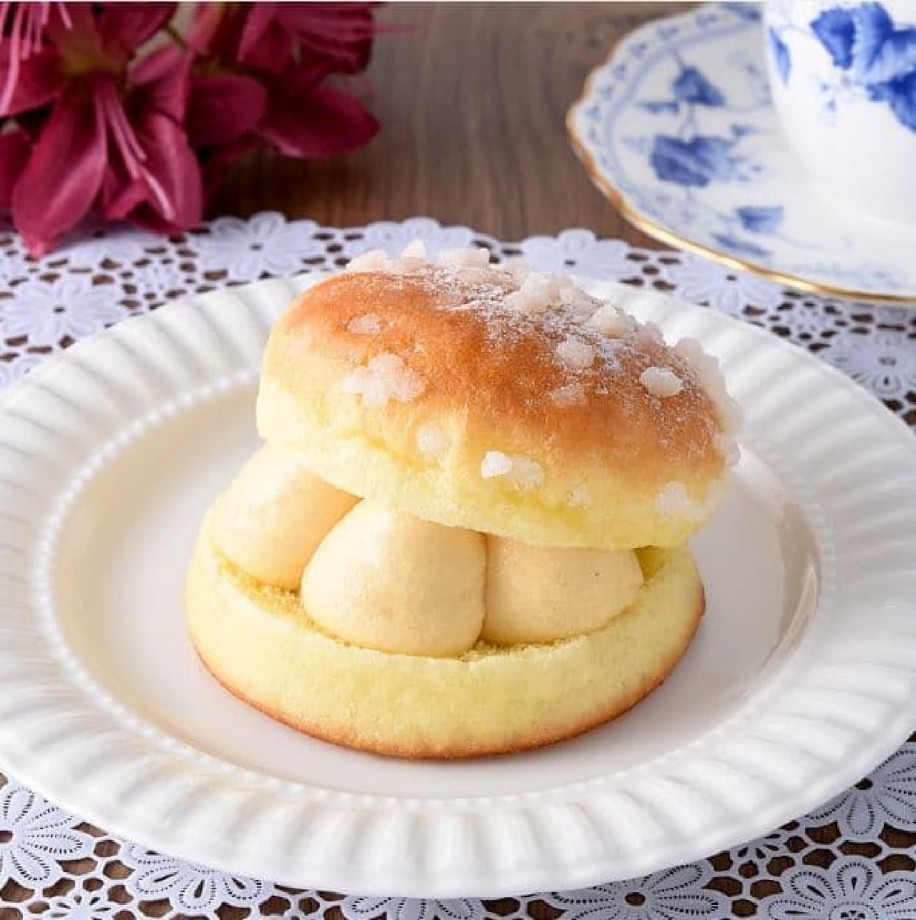 南仏生まれの定番スイーツ「トロぺジェンヌ」。くちどけの良いブリオッシュ生地で、カスタードクリームにブルターニュ産発酵バターを配合したコクのあるクリームをサンド。