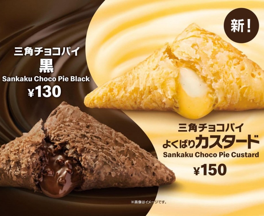 マクドナルドの秋冬の風物詩「三角チョコパイ」から、初登場となる「三角チョコパイ よくばりカスタード」と、定番人気の「三角チョコパイ 黒」が10月13日に発売される。期間限定。