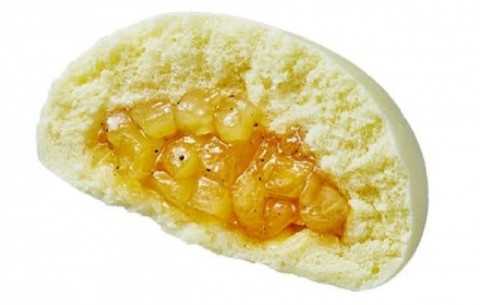 角切りりんご果肉とリンゴフィリングを、しっとりとした生地で包んでいる。香り・味の強い発酵バターを配合することで風味とコクをアップ。