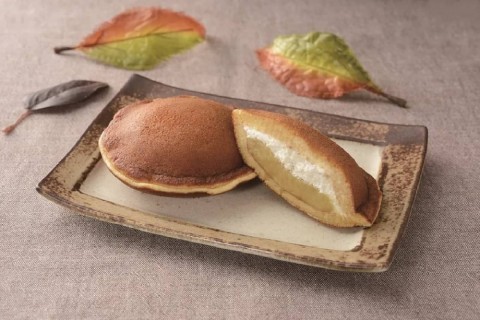 紅はるかを使用した濃密な芋餡で仕立てた“芋クリーム”と、北海道産生クリームを配合した“ホイップクリーム”を、原料に長いもなどを加えた、もちもちとした歯切れの良いどら焼き生地の中にとじ込めたもの。濃厚な味わいと甘みの芋クリームと、濃厚で乳味感のあるホイップクリームを楽しめる和洋折衷スイーツ。