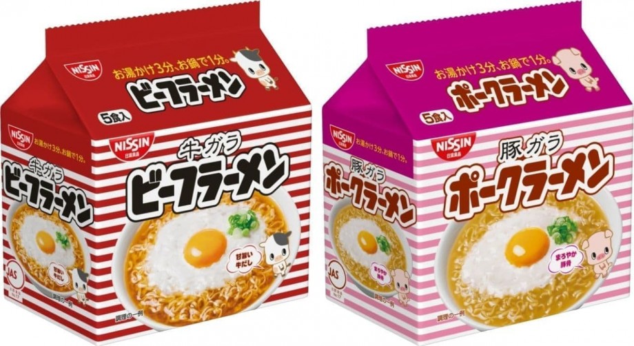 日清食品から、「ビーフラーメン」と「ポークラーメン」が復刻販売されている。それぞれ5食パック入り、各555円(税別)。
