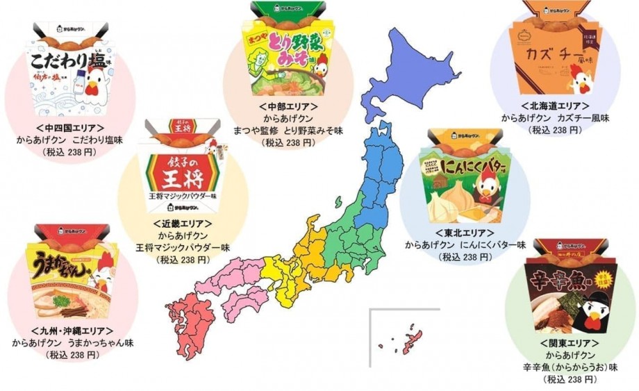 ローソンから、各エリアごとの「ご当地からあげクン」が全国7エリアで2月14日に発売された。各238円(税込)。