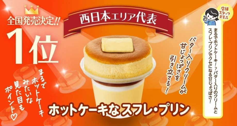 2021年9月に発売された西日本エリア代表の「ホットケーキなスフレ・プリン」が、全国のファミリーマートで発売。まるでホットケーキのようなスフレ・プリン。カスタード入りのバタークリームとホットケーキ風スフレが、プリンと相性抜群。