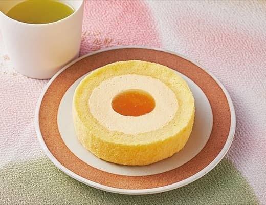 八天堂コラボならではのカスタードクリームと桃の爽やかな甘味が楽しめるロールケーキ。ももカスタードクリームと白桃ソースを組み合わせている。