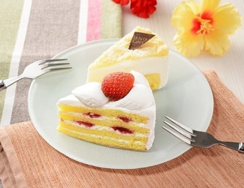 さっぱり口どけのよいクリームとあまおう苺使用の甘酸っぱいジャムを合わせた苺ショートケーキと、ベイクドチーズケーキとレアチーズケーキの2種類を楽しめるダブルチーズケーキをアソート。