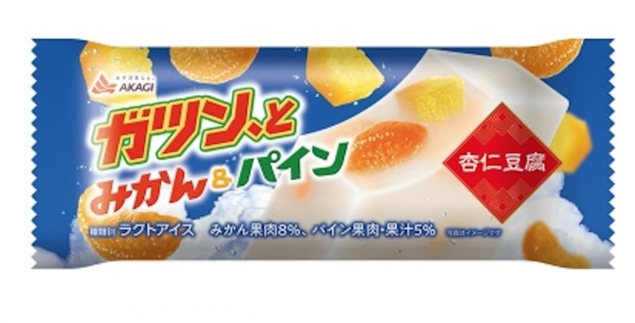 杏仁豆腐の風味と共にみかんとパインの果肉感を存分に楽める“瞬間気分爽快っ!”なアイスキャンディー。