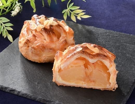 パイ生地の中に甘酸っぱい味わいが特徴のふじりんご(1/2個分)と、程よい甘みのあるカスタードクリーム、ダイスカットしたりんごを入れて焼き上げたアップルパイ。