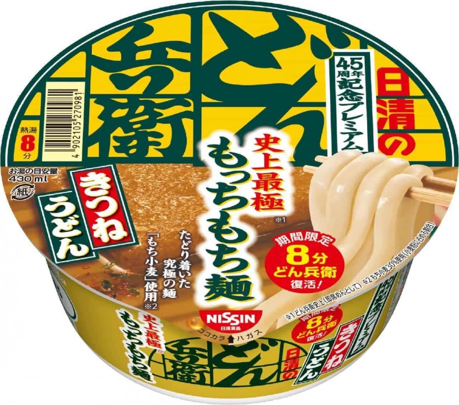 「日清のどん兵衛 きつねうどん 45周年記念プレミアム 史上最極もっちもち麺」「日清焼そばU.F.O. 45周年記念プレミアム 史上最極どろっと特濃ソース」 (参考記事: えん食べ)