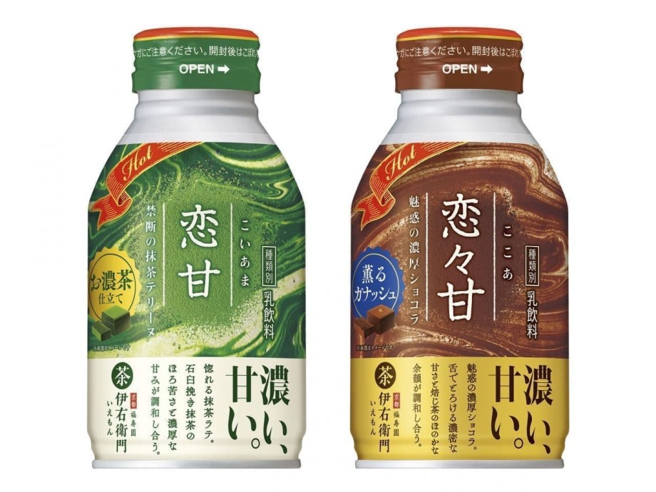 「伊右衛門 恋甘(こいあま)」「伊右衛門 恋々甘(ここあ)」ホット専用の抹茶ラテ&ココア飲料! (参照記事: えん食べ)