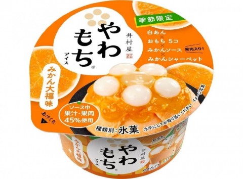 井村屋「やわもちアイス みかん大福味」10周年記念 第2弾!-- みかんシャーベット・みかんソース・白あん・おもち