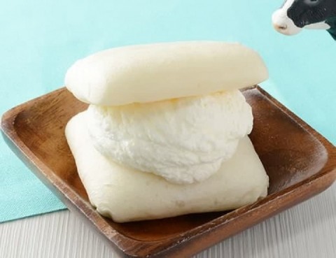 白いパオ生地に、北海道産生クリーム使用のホイップがサンドされたスイーツサンド。257円(税込)。
