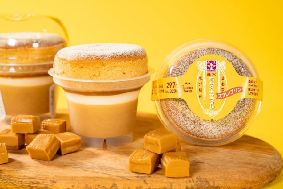 ファミリーマートで、「森永ミルクキャラメルスフレ・プリン」が8月23日に発売される。320円(税込)。