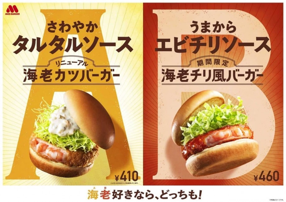 モスバーガー「海老チリ風バーガー」人気の中華料理をアレンジ!定番「海老カツバーガー」リニューアル (参考記事: えん食べ)