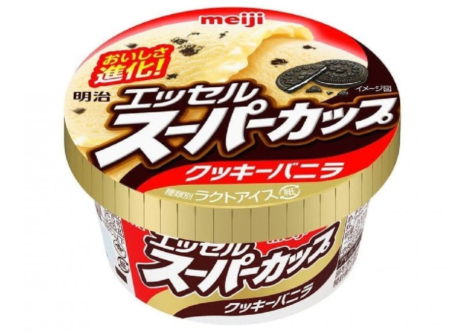 「明治 エッセル スーパーカップ クッキーバニラ」人気フレーバーが進化!なめらかバニラアイス × しっとりココアクッキー (参考記事: えん食べ)