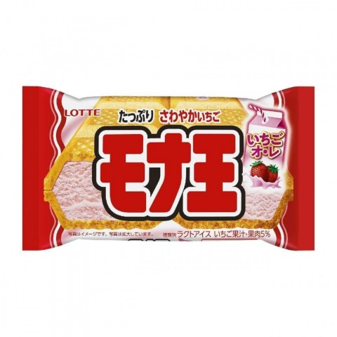 いちごオ・レ味のアイスとモナカを組み合わせた「モナ王ブランド」の新商品。食べごたえのあるいちごオ・レアイスとモナカとの一体感を最後まで楽しめる。いちごオ・レアイスはなじみ深い紙パックのいちごオ・レをイメージしたやさしい味わい。