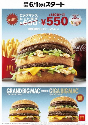 マクドナルド “ビッグマックなんて、ペロリだよ。” キャンペーン セットがお得に!「グランドビッグマック」「ギガビッグマック」復活 (参考記事: えん食べ)