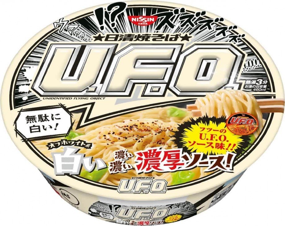 真っ白に仕上げた新感覚カップ焼そば。「日清焼そばU.F.O.」でおなじみの「濃い濃い濃厚ソース」を白くした商品で、色が白いからといって味が違うというわけではなく、いつも通りの「U.F.O.」のおいしさが楽しめる。