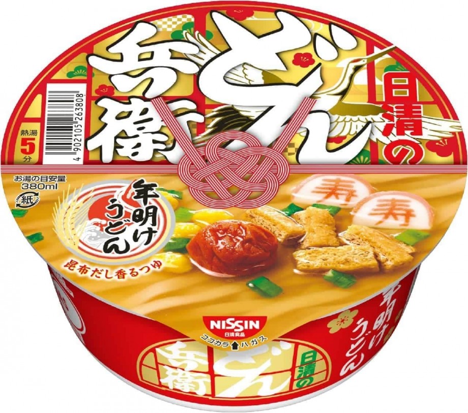 幸せを願って食べる縁起物「日清のどん兵衛 年明けうどん」!紅い梅干しや長寿を願う“寿かまぼこ”入り