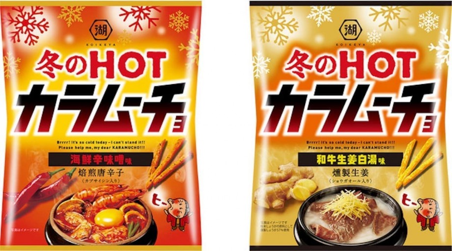 湖池屋から、新商品「冬のHOTカラムーチョ 海鮮辛味噌味」と「冬のHOTカラムーチョ 和牛生姜白湯味」が12月28日より全国のコンビニエンスストアで、2021年1月18日よりスーパーマーケットなどで発売される。価格はオープン。