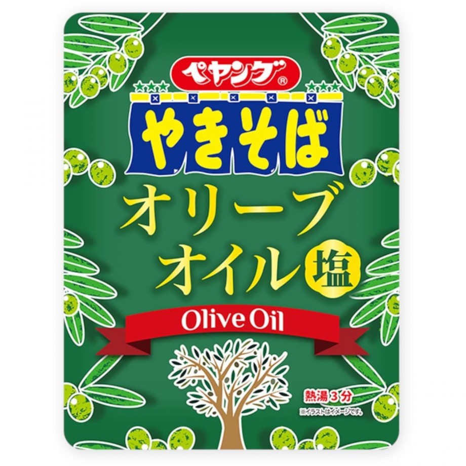 「ペヤングオリーブオイル塩やきそば」!-- オリーブオイルきいた塩ベースのソースに3種の彩り野菜