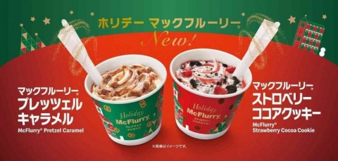 マクドナルド「マックフルーリー プレッツェル キャラメル」「マックフルーリー ストロベリー ココアクッキー」ホリデーシーズン新作! (参照記事: えん食べ)