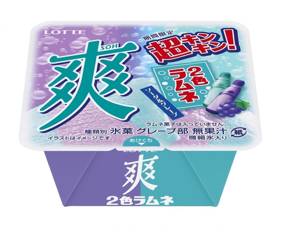 ロッテ「爽 2色ラムネ」ソーダ&グレープ 2種のラムネの味わい 微細氷が織りなすすっと溶けるくちどけ