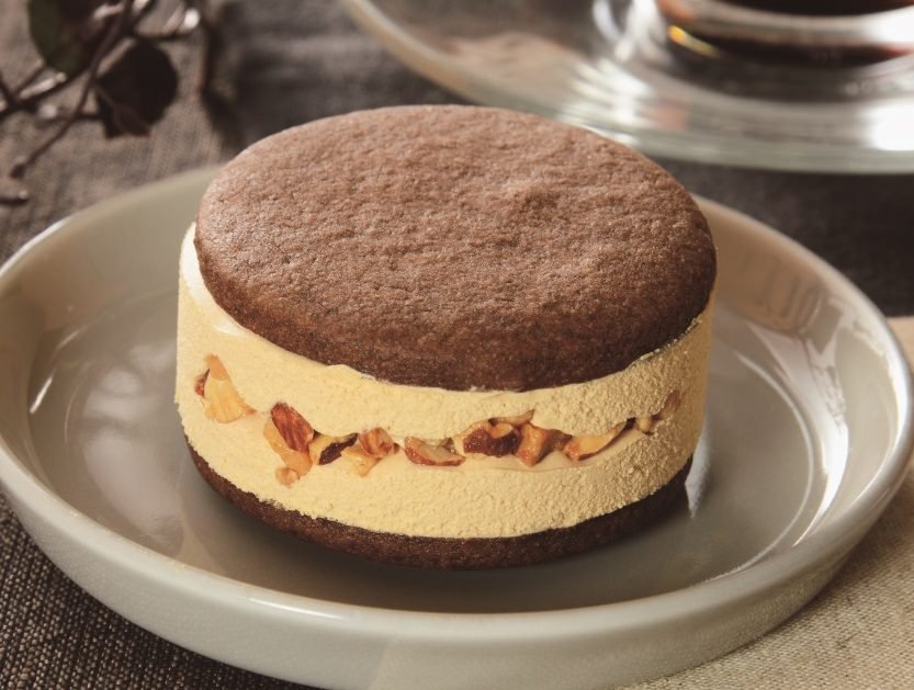 2種類の焦がしカラメルを加えたほろ苦いキャラメル味のバタークリームを、サクサクのクッキー生地でサンド。