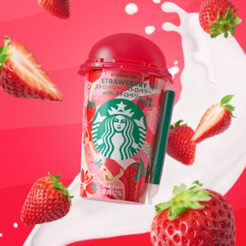 ファミリーマートで、「スターバックス ストロベリー ストロベリー with ストロベリー」が、数量限定で5月9日に販売される。270円(税込)。