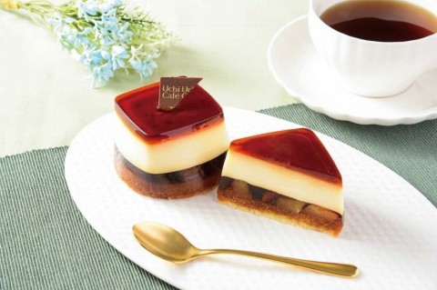 マスカルポーネ入りチーズフィリングや生クリームなどを使用したプリンとスポンジ生地で、ダイス状にカットしたりんごと洋ナシ入りのカラメルゼリーをサンド。天面には、ほろ苦いカラメルを合わえている。濃厚なプリンの味わいと、リンゴと洋ナシの食感が楽しめる一品。