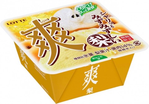 ロッテ「爽 梨」裏ごし・すりおろし・角切りの梨果肉・果汁が過去最大量入ったジューシーな氷菓 (参考記事: えん食べ)