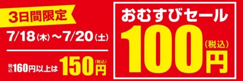 ファミリーマート各店で、「3日間限定おむすびセール」が7月18日から20日まで開催される。