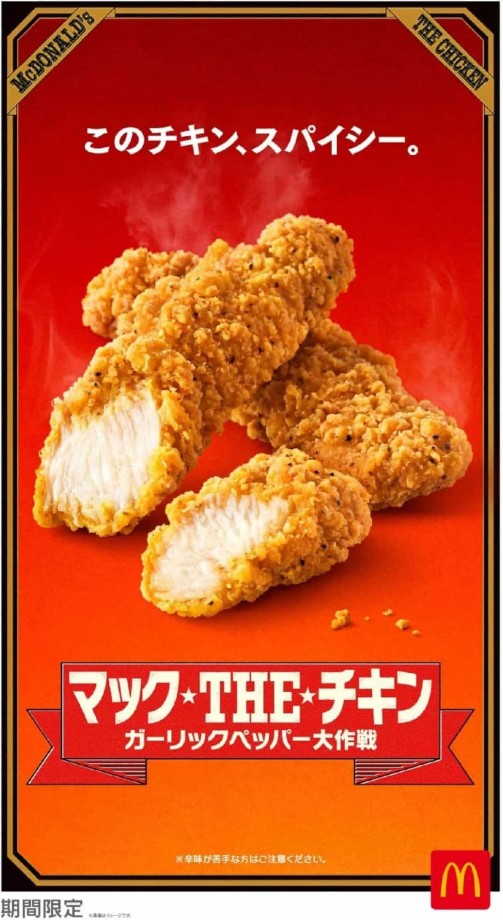 マクドナルド「マックTHEチキン ガーリックペッパー」11月1日発売!夜マック限定「食べくらべポテナゲ大」「食べくらべポテナゲ特大」も (参照記事: えん食べ)