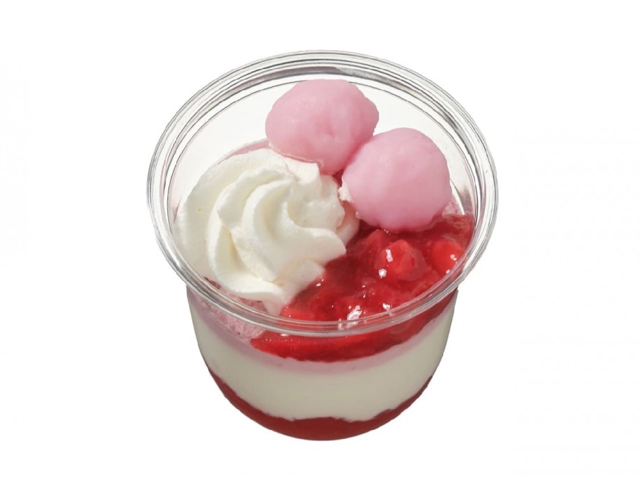 苺ソースとレアチーズのももいろパフェ 334.80円(税込)