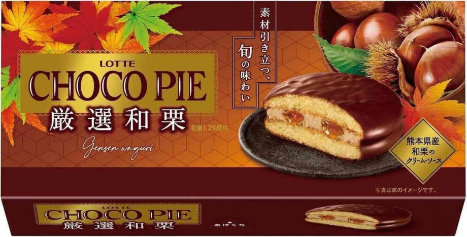 ロッテから、熊本県産和栗のクリームとソースの組み合わせが楽しめる「チョコパイ〈厳選和栗〉」が8月2日に発売された。6個入り、388円前後(税込)。