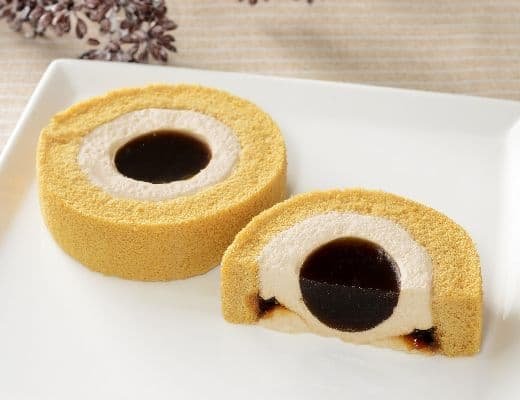 沖縄県産黒糖の黒蜜を使用した、しっとりとしたロール生地に、黒蜜を合わせたクリームとソースを絞り、黒蜜のもっちりとしたゼリーをトッピング。