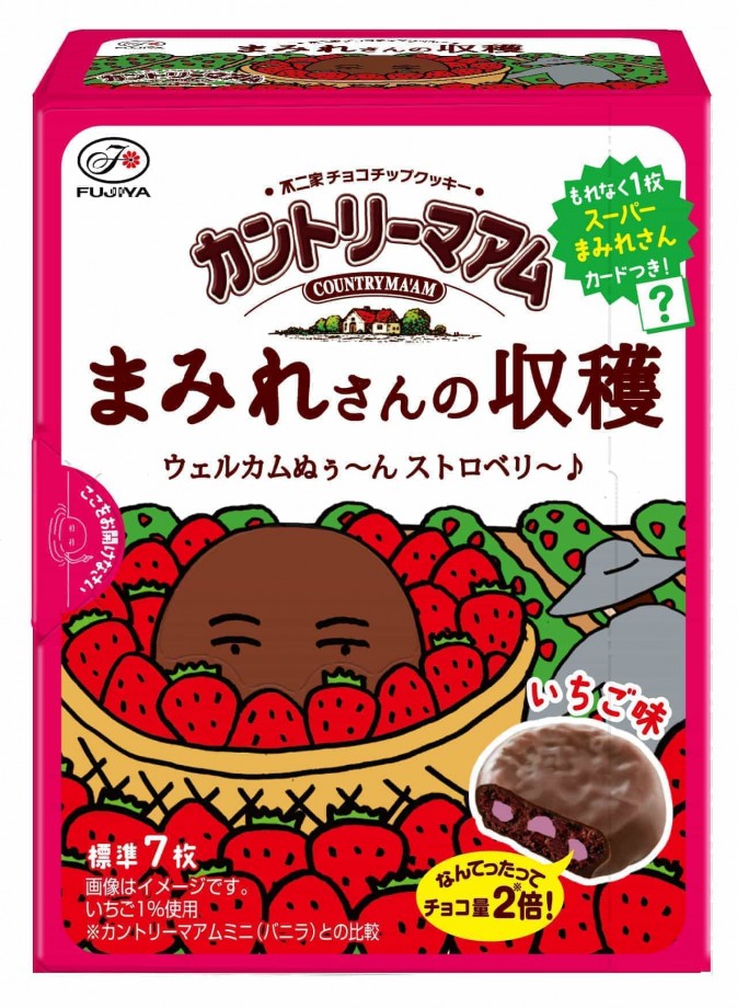 不二家「カントリーマアムまみれさんの収穫BOX」いちご果汁といちご味のチョコチップ入りクッキー!スーパーまみれさんカード1枚(全4種)付き (参照記事: えん食べ)