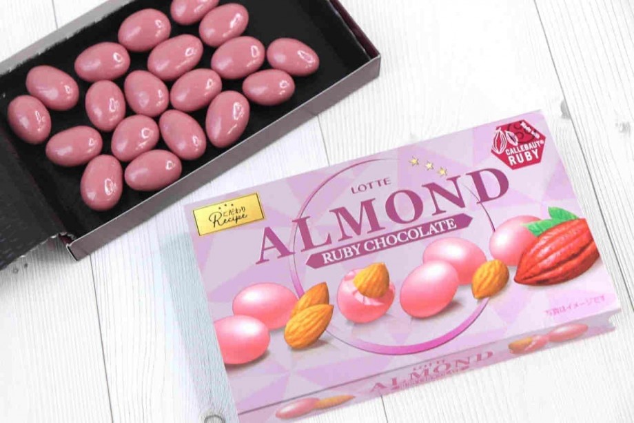 チョコレートの定番商品「ロッテアーモンドチョコレート」のルビーチョコ版。まるごとのアーモンドをルビーチョコで包み、卵型に仕上げている。ルビーチョコのまろやかな味わいとフルーツのような甘酸っぱさが楽しめる。