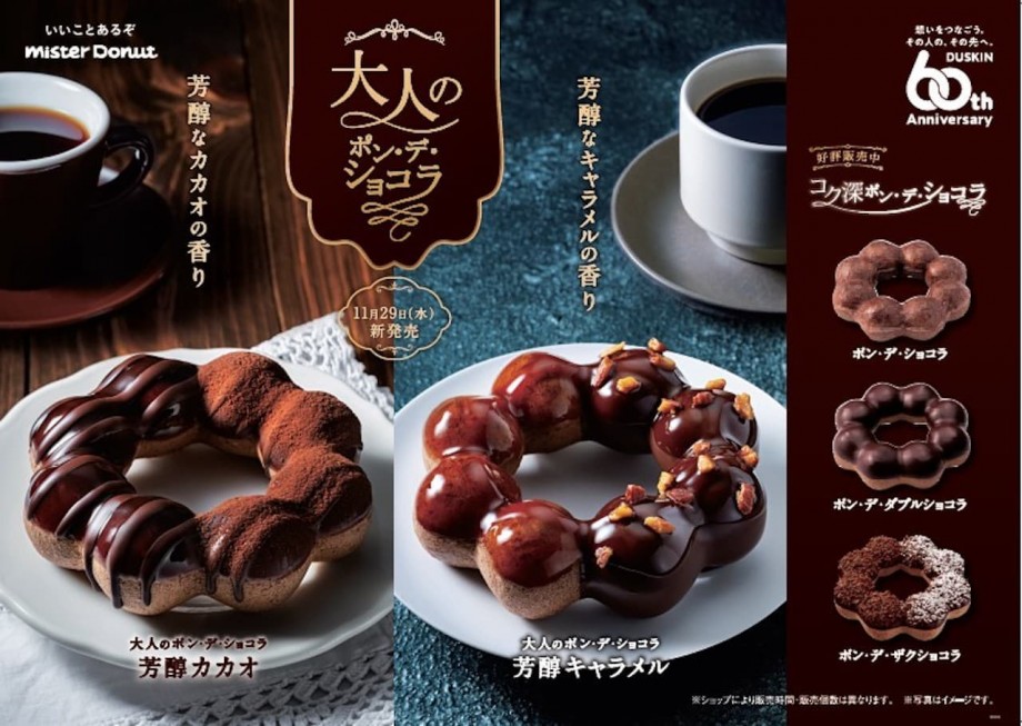 ミスド「大人のポン・デ・ショコラ」11月29日発売!「大人のポン・デ・ショコラ 芳醇カカオ」「大人のポン・デ・ショコラ 芳醇キャラメル」 (参照記事: えん食べ)