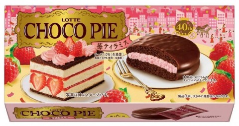 ロッテから、新シリーズ「ハピネスモチーフチョコパイ」の第一弾として「チョコパイ<苺ティラミス>」が2月28日に発売される。
