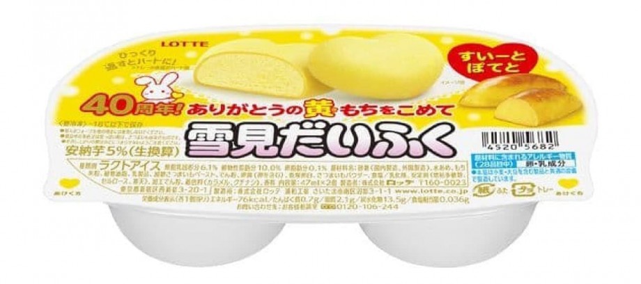 今年で発売40周年を迎えた雪見だいふくに40周年のありがとうの気持ちを込め、“黄色いおもち”とかわいらしい“ハートの形状”に仕上げている。