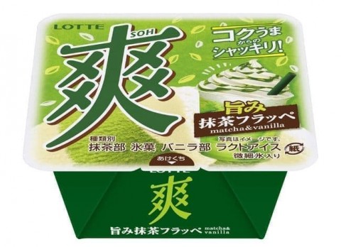 ロッテから、「爽 旨み抹茶フラッペ<抹茶&バニラ>」が3月15日に全国で発売される。140円(税別)。