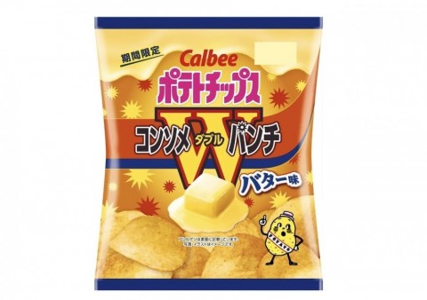 カルビー「ポテトチップス コンソメWパンチバター味」!-- 「コンソメWパンチ」にバターの濃厚なコクを加えて