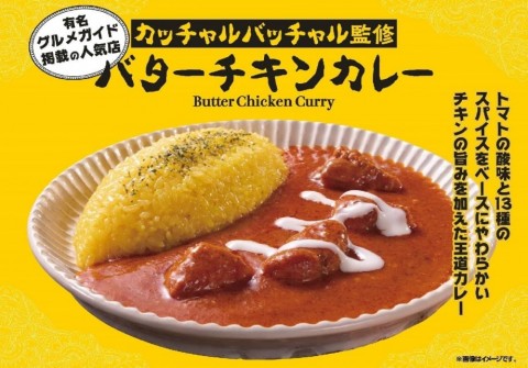 コンビニでは初めてとなる、人気カレー店「カッチャルバッチャル」監修の商品。トマトの酸味とカルダモン、クミン、コリアンダーなどさわやかなスパイスの風味が特徴のバターチキンカレー。