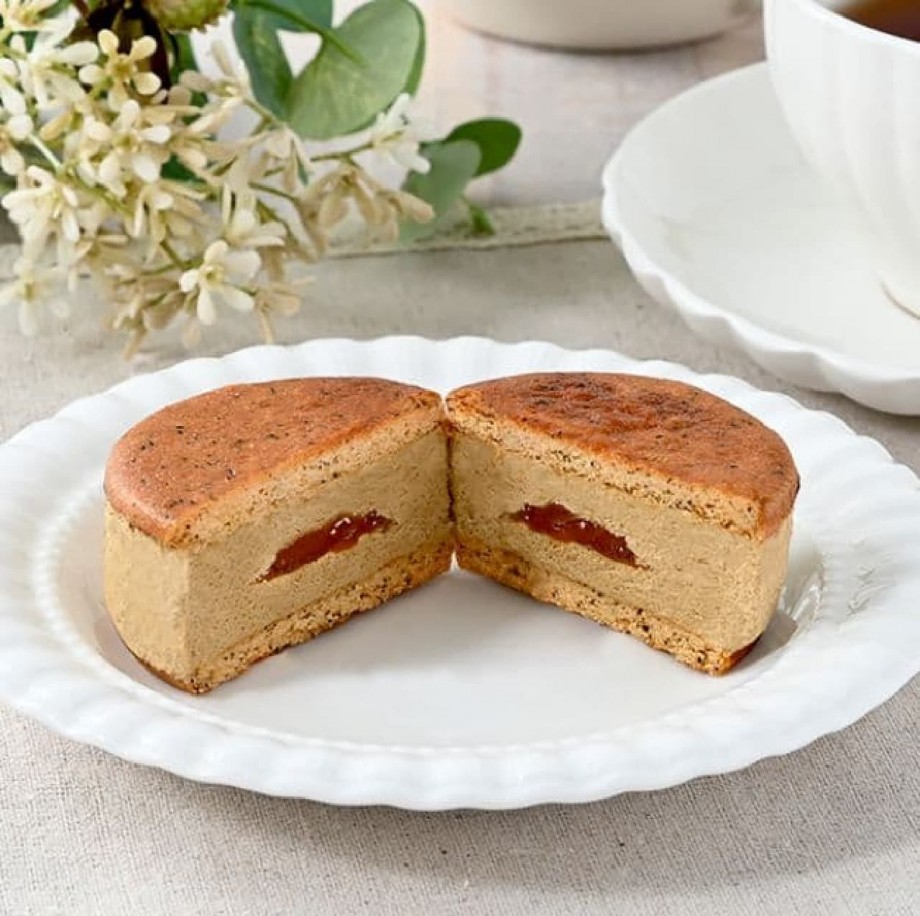 発酵バター入りの紅茶ビスケットで、くちどけのよい紅茶味のバタークリームをサンド。クリームの中には、味のアクセントにキャラメルソースが入っている。