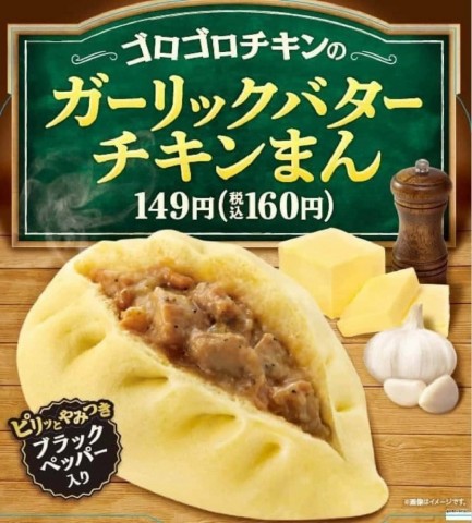 日本酒、みりん、塩等で一晩じっくり漬け込んで下味をつけた鶏肉や具材を、香り高い生のにんにくとコクのあるバターを使ったガーリックバター味に仕上げ、ふんわりもっちりした生地で手包みした中華まん。具材の約半分を大きめにカットした鶏肉がしめており、食べた時にガーリックバターチキンのゴロゴロとした食感を楽しめる。