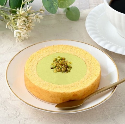 ピスタチオ味のクリームとカットしたピスタチオを内側に入れたバウムクーヘン。
